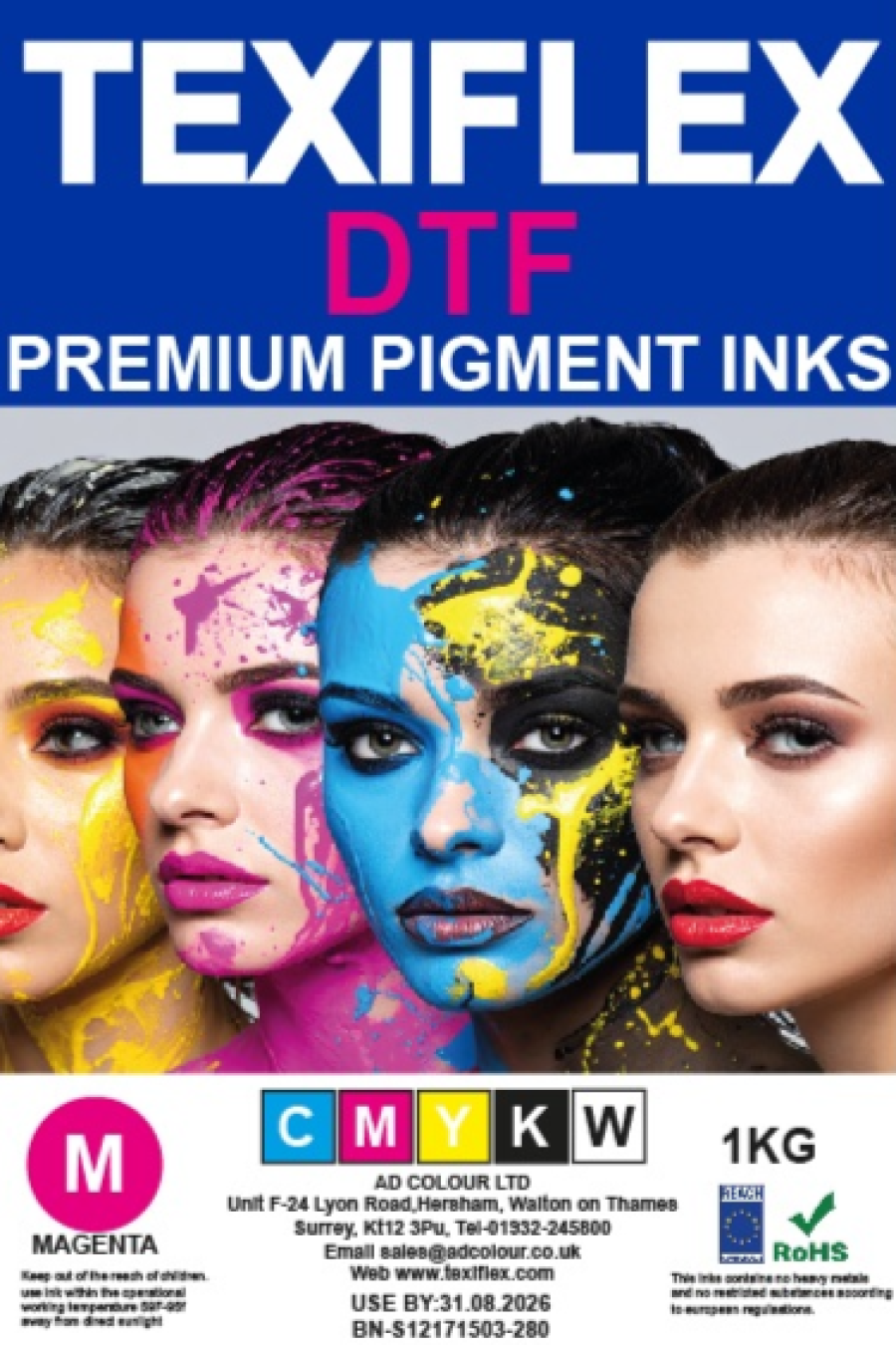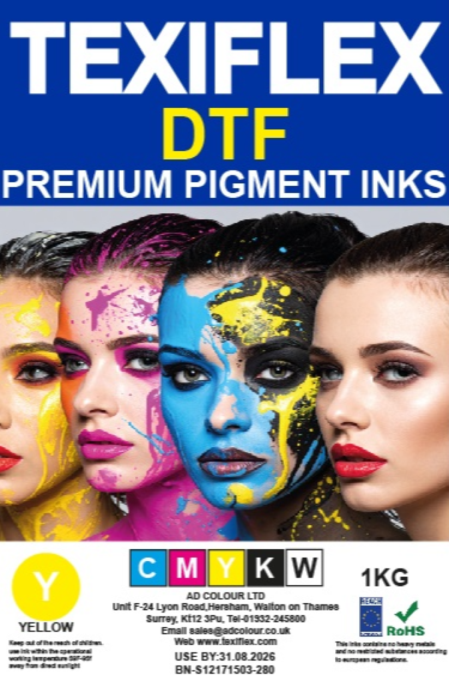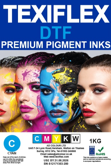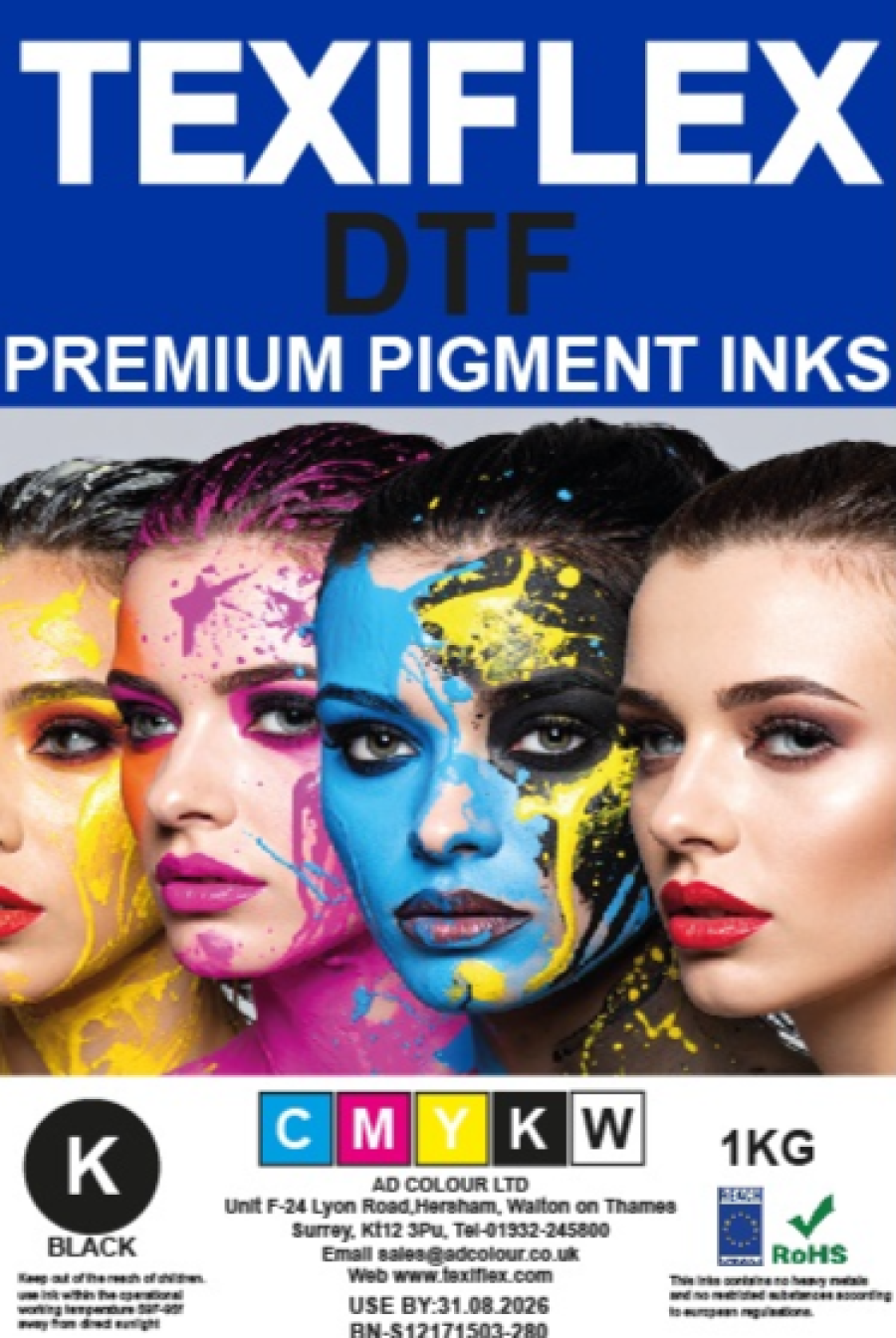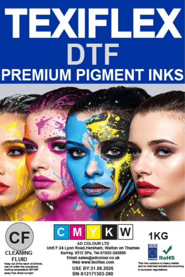Our Direct to Film (DTF) printing inks offers a excellent printing quality and vivid colour performance, even when used with delicate graphics. It creates a soft printed finished image texture, which is both soft to feel and has good stretch.