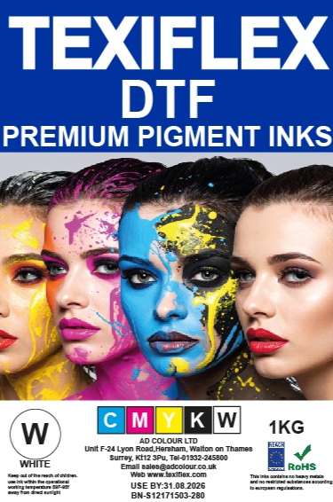 They have been formulated by us, and are made for us by inktec with many hours of testing to develop a quality DTF ink that offer good consistent ink flow, We offer CMYK with WHITE options.